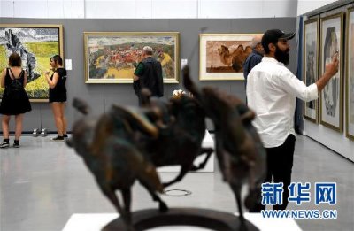 2018年9月5日,观众在西班牙马德里中国文化中心参观艺术与和平中国当代美术作品展。 由中国美术家协会策划的艺术...